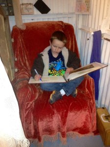 Of course, no trip to the museum would be complete without a trip to the red velvet chair in the secret corner. I will not tell you what he wrote in the secret book. You will have to come to the museum and see for yourself. It’s a secret for now.
