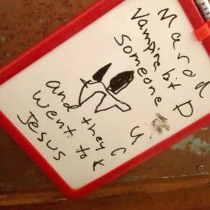 My sister took her grandson Mason for a recent visit to the poetry museum. In the Craig’s List poetry exhibit, he ignored the instructions (I love when people do that–I’m serious) and wrote a poem about a vampire: