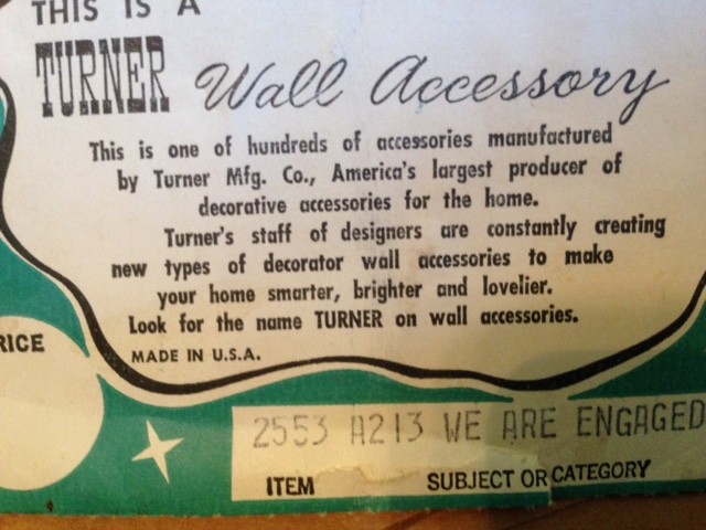 I wrote a poem on a piece of a grocery sack today. A few months ago I bought the above two pieces of artwork, or as they are called on the back “wall accessories” at a thrift store. They are both prints from 1972 that are titled “We Are Engaged.” I altered one of them and am waiting on inspiration to do the other.