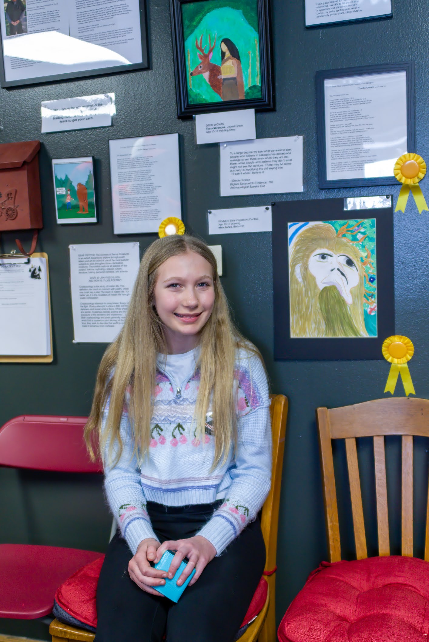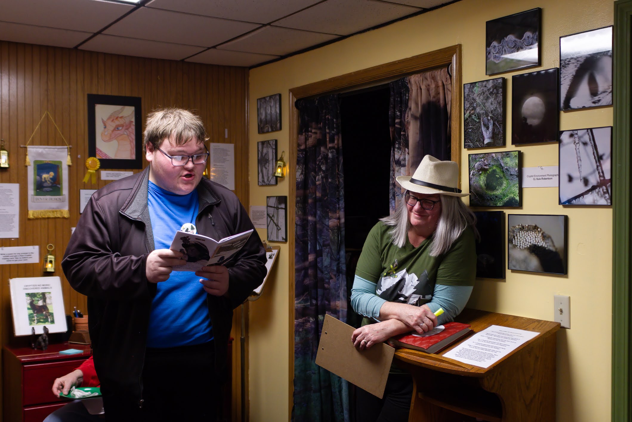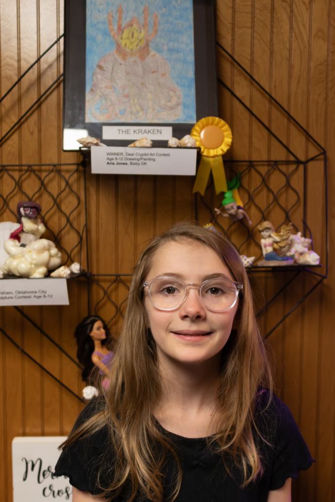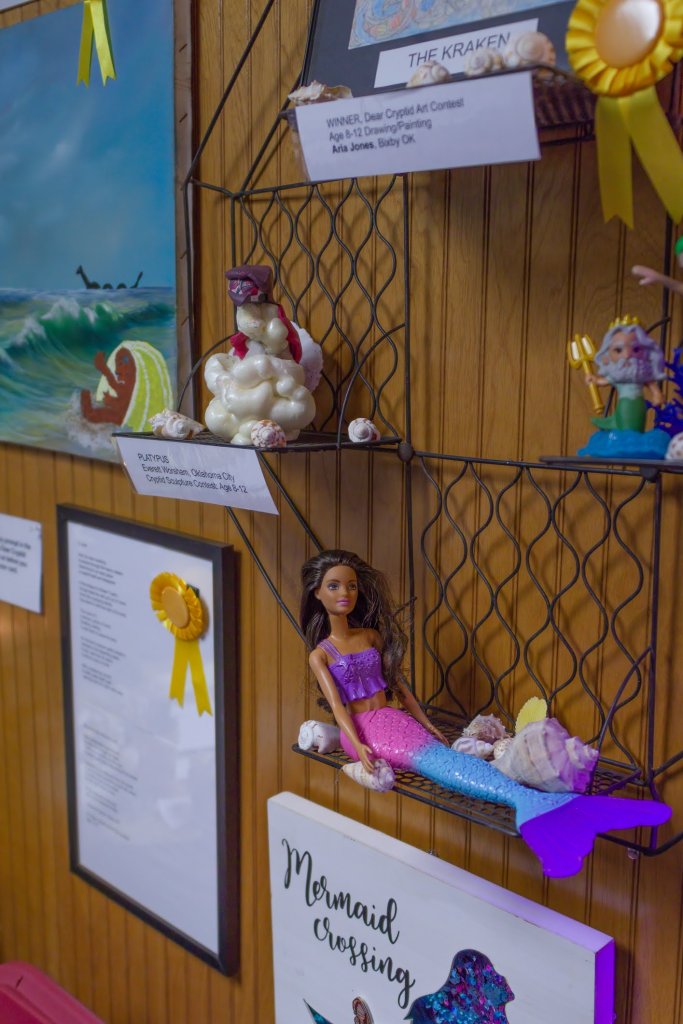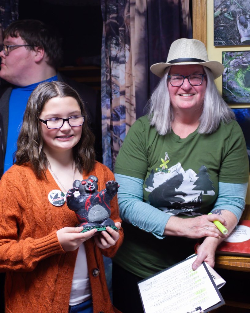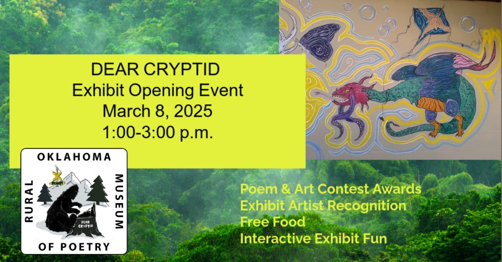 THANK YOU to everyone who joined ROMP to celebrate our exhibit DEAR CRYPTID: The Sonnets of Secret Creatures. We celebrated the exhibit artists and designers Alysha Little, Bill Guthrie, Roxann Yates, Sula Robertson, and Kelly Palmer, and honored the winners of the art and poetry contests. We had great pizza from Ranch House Pizza, awesome cake, and lots of poetic and artistic and creative fun.