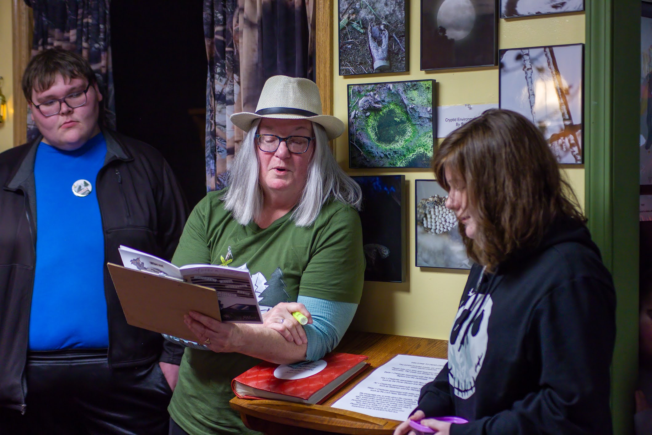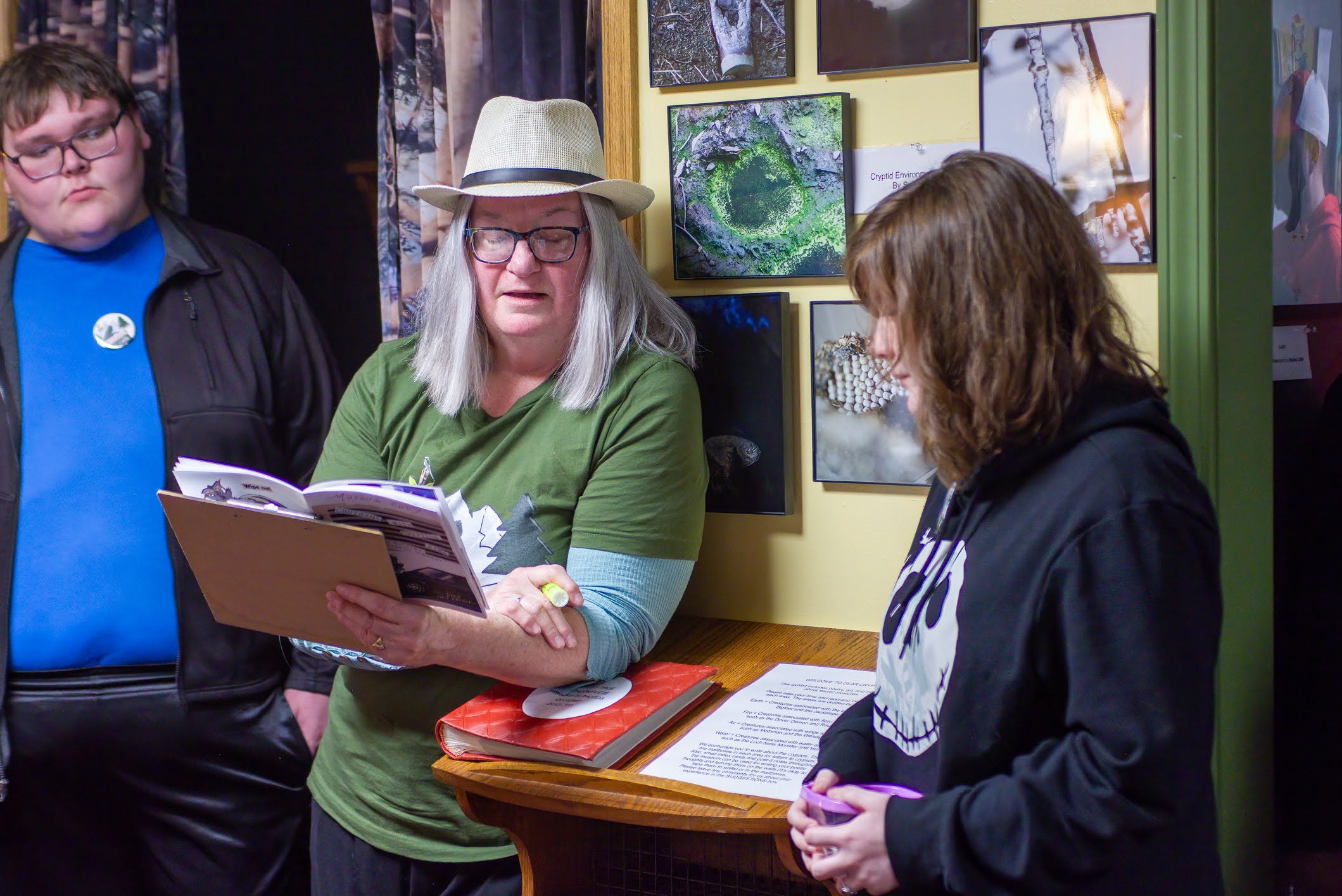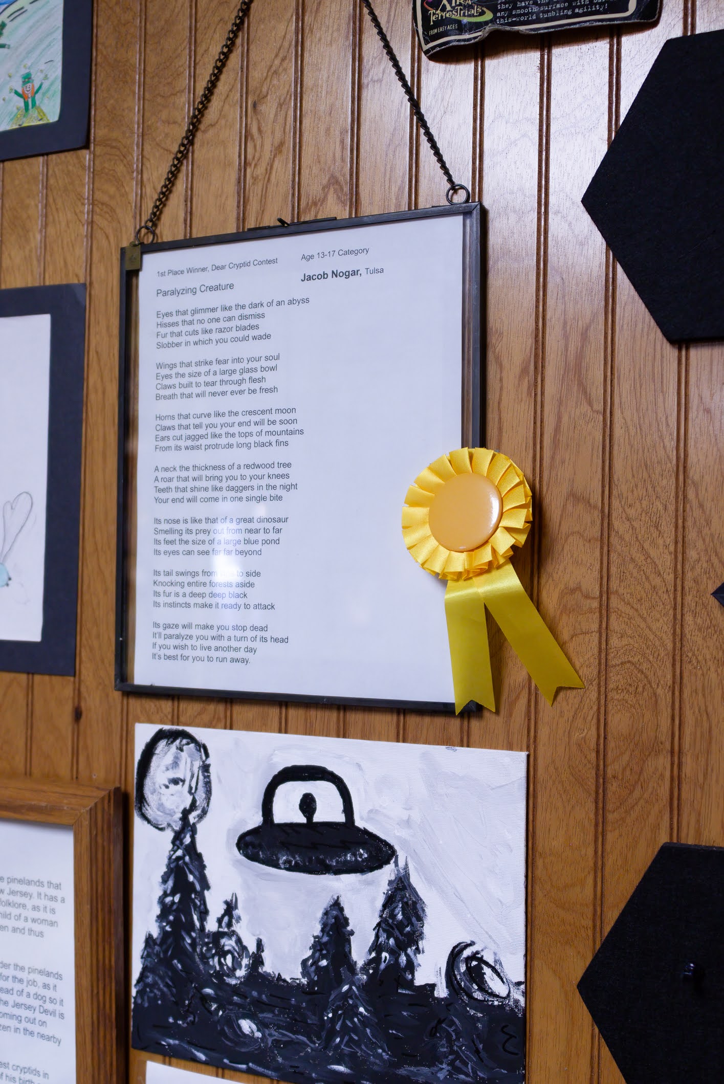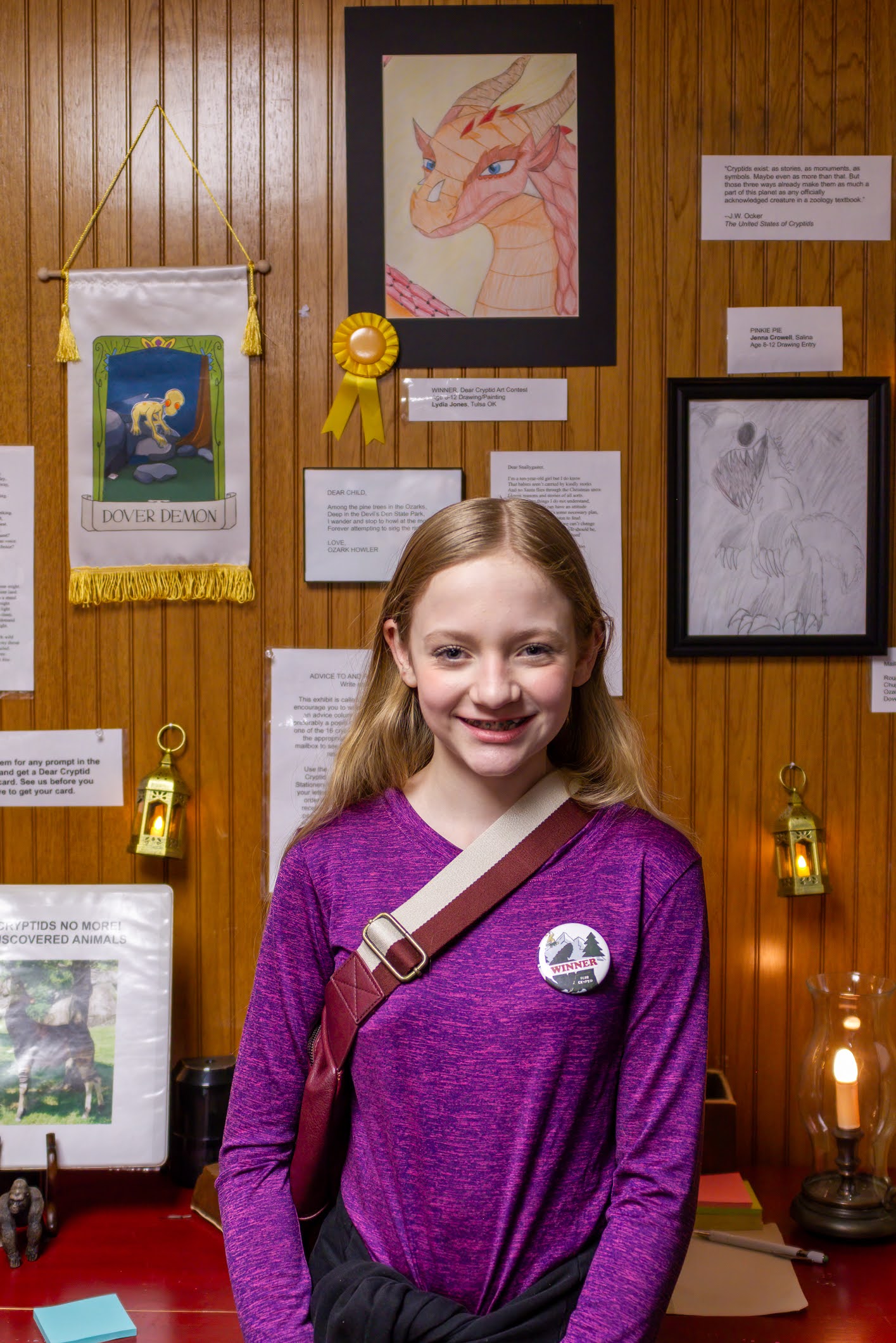 THANK YOU to everyone who joined ROMP to celebrate our exhibit DEAR CRYPTID: The Sonnets of Secret Creatures. We celebrated the exhibit artists and designers Alysha Little, Bill Guthrie, Roxann Yates, Sula Robertson, and Kelly Palmer, and honored the winners of the art and poetry contests. We had great pizza from Ranch House Pizza, awesome cake, and lots of poetic and artistic and creative fun.
