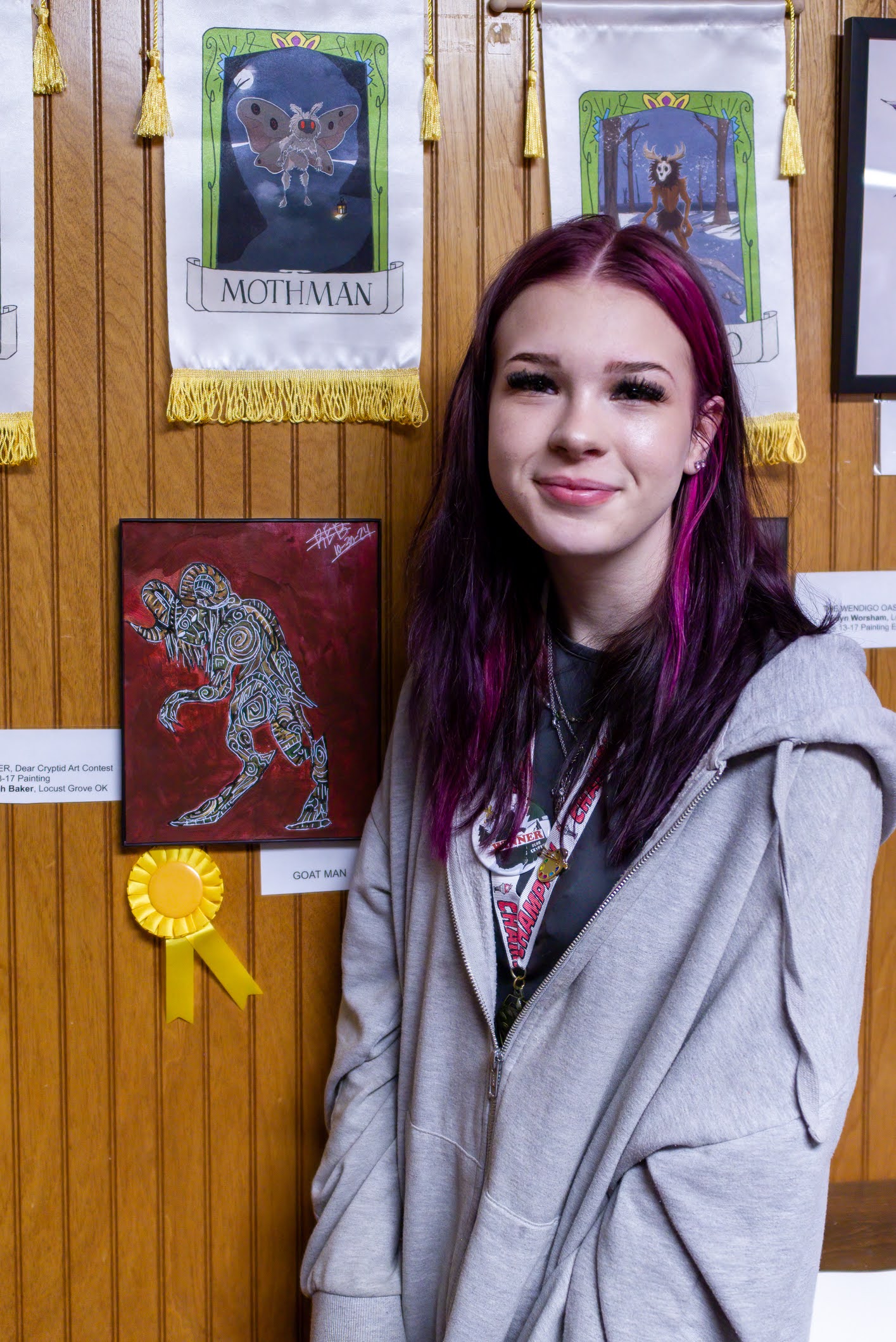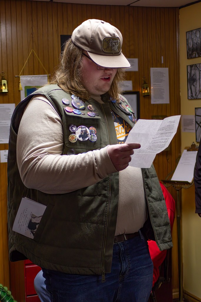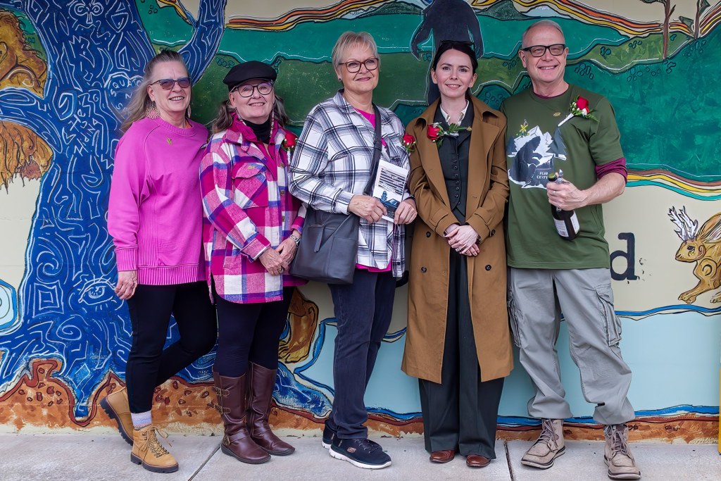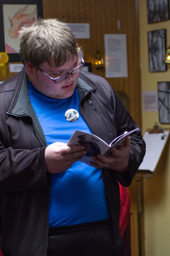 Silvery Diorama by Bill GuthrieThe Burford familyAdam Kaney reading his prize-winning poemMason Turner reading his prize-winning poemCharlie Grusin reading his prize-winning poemShaun Perkins reading Autumn Farmer’s prize-winning poemPrize-winning poet Jackson LambertPrize winning artist Adeleigh SharpPrize-winning artist Aria JonesPrize-winning artist Lydia JonesPrize-winning artist Ryleigh BakerPrize-winning artist Hannah BrooksPrize-winning artist Irina JonesPrize-winning artist Nancy JuneExhibit artists: Kelly Palmer, Roxann Yates, Sula Robertson, Alysha Little, Bill GuthrieBill Guthrie christening the muralFarthest traveled: The Lamberts of Slinger, Wisconsin