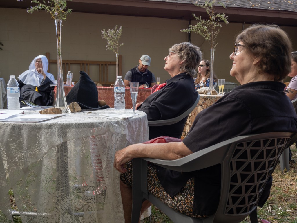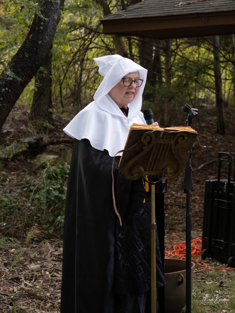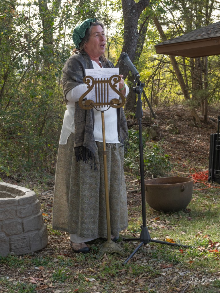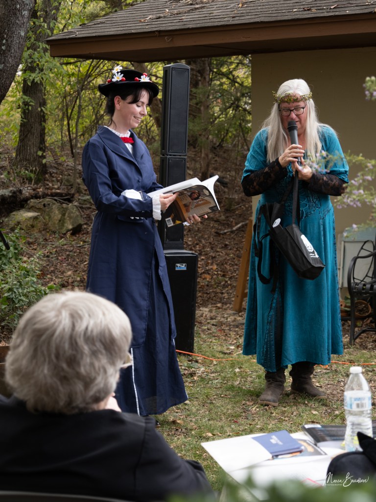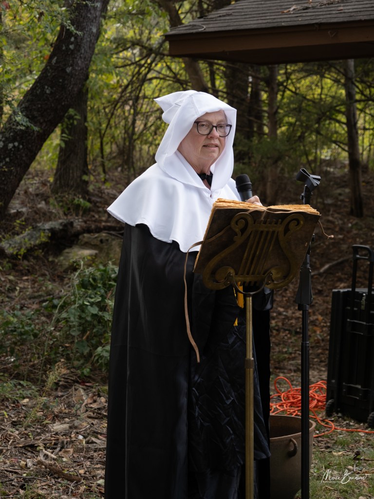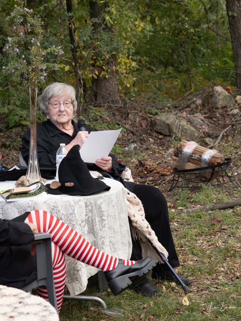 The opening event included a Witchtauqua, with area people presenting a poem or brief biography of a witch from the exhibit booklet. Special guests were poet/actor Deborah Hunter, Tulsa, who participated in our 2020 Chautauqua as Sojourner Truth, and Dr. Tracy Floreani, Oklahoma City University.