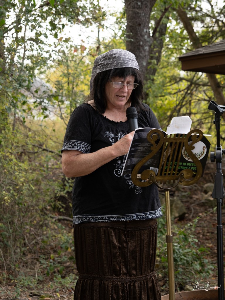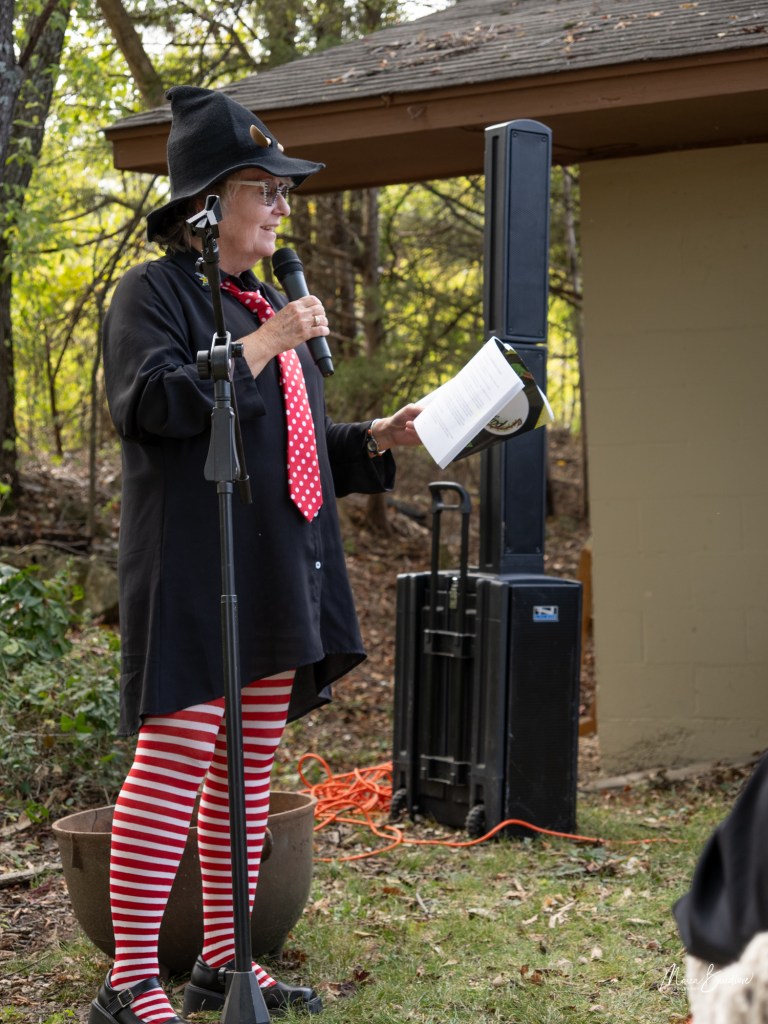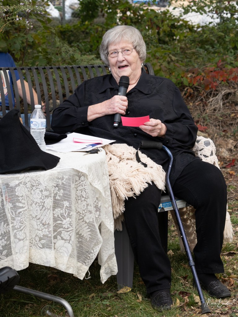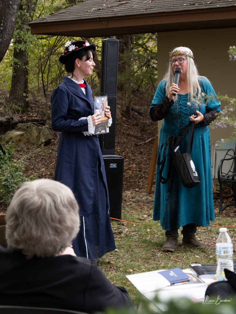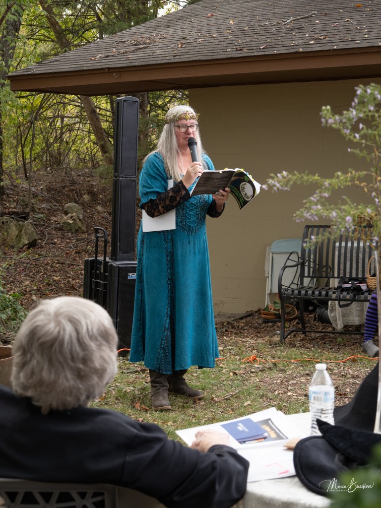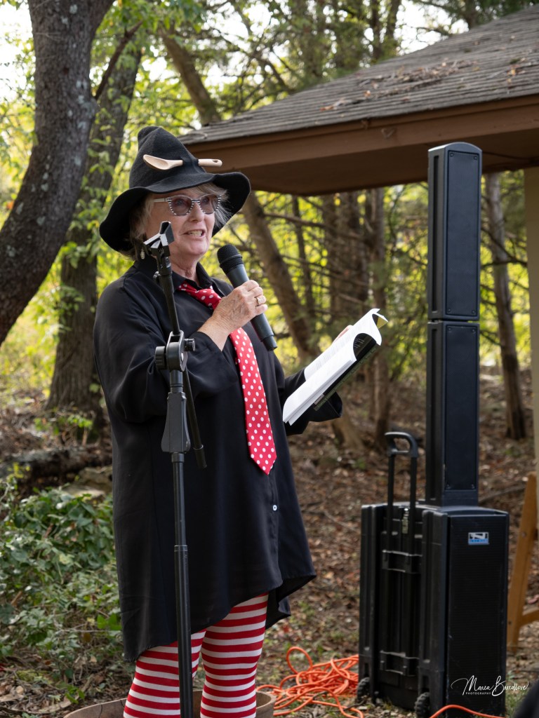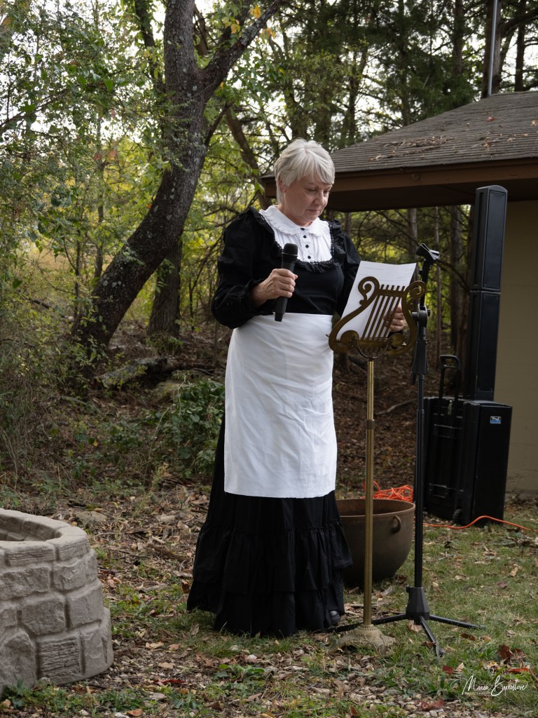 The opening event included a Witchtauqua, with area people presenting a poem or brief biography of a witch from the exhibit booklet. Special guests were poet/actor Deborah Hunter, Tulsa, who participated in our 2020 Chautauqua as Sojourner Truth, and Dr. Tracy Floreani, Oklahoma City University.