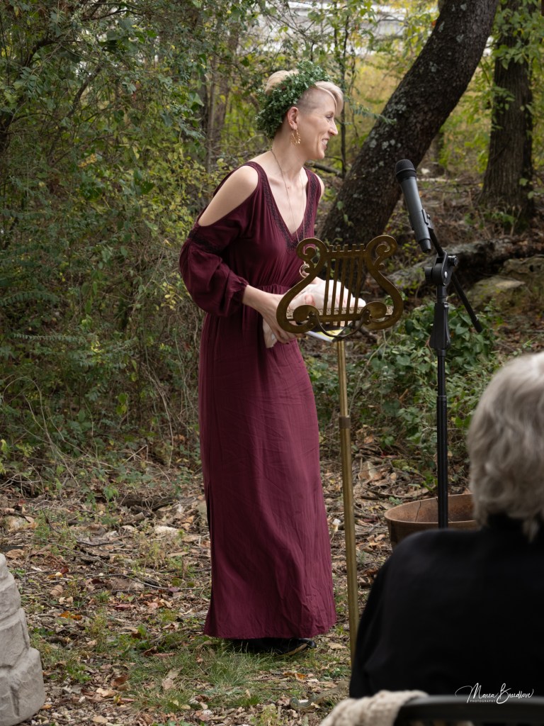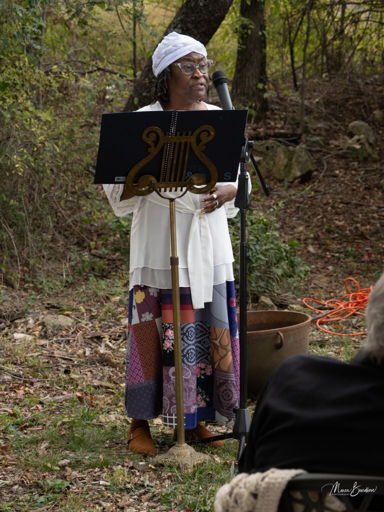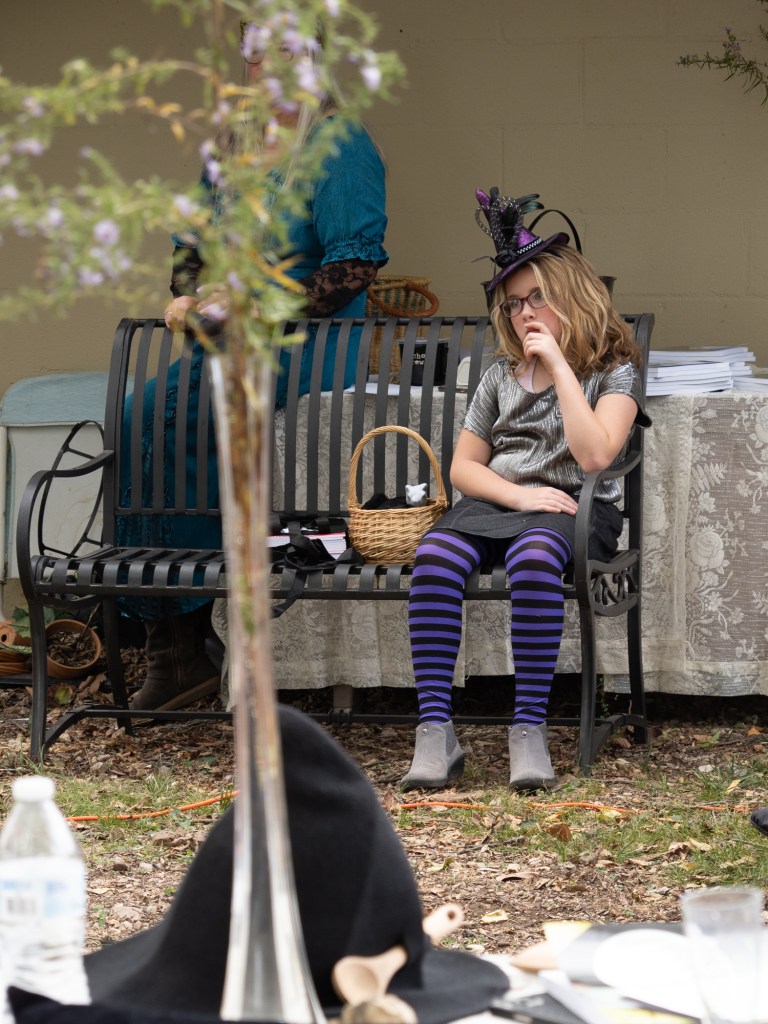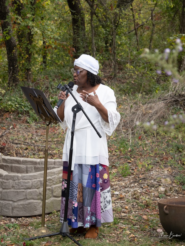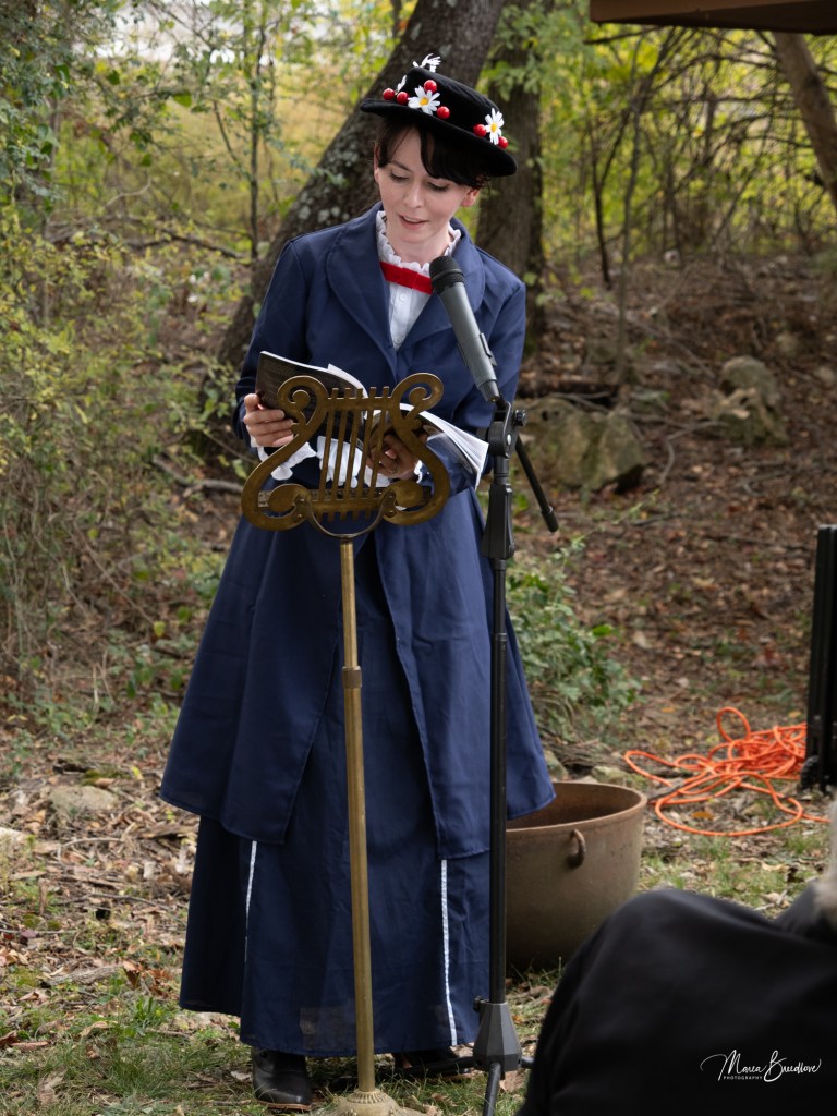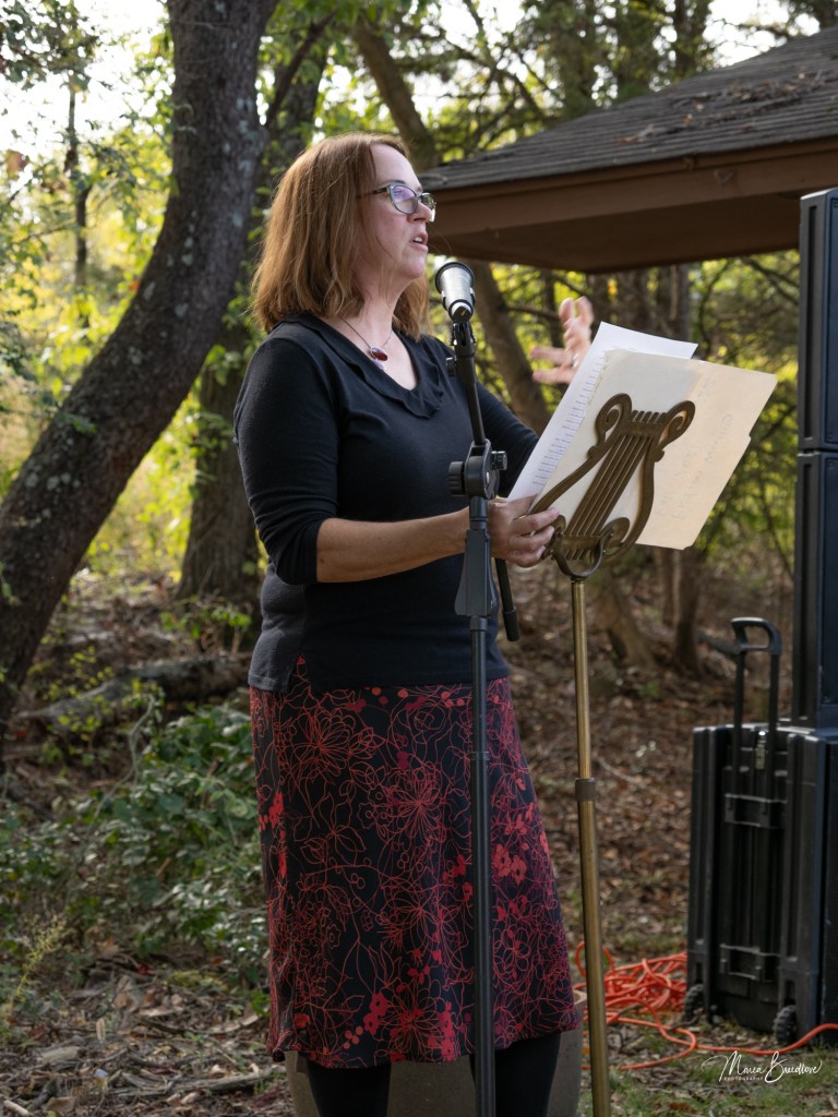 The opening event included a Witchtauqua, with area people presenting a poem or brief biography of a witch from the exhibit booklet. Special guests were poet/actor Deborah Hunter, Tulsa, who participated in our 2020 Chautauqua as Sojourner Truth, and Dr. Tracy Floreani, Oklahoma City University.