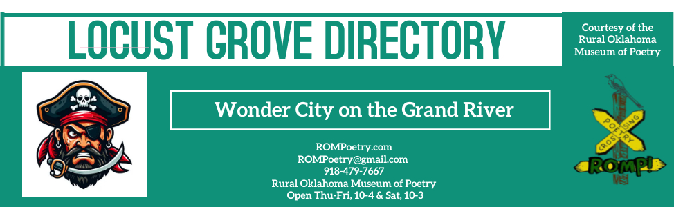 Free paper copies of this directory can be picked up at the Rural Oklahoma Museum of Poetry, corner of Delaware and Main, when the museum is open, Thu-Fri, 10-4 & Sat, 10-3, or by arrangement. Email ROMPoetry@gmail.com for any updates needed.