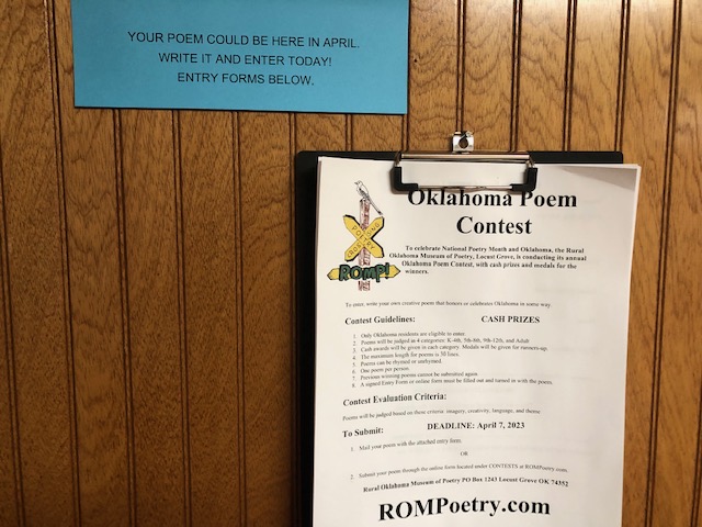 The exhibit featured Oklahoma poets, poetry, photography, places, artwork and more. Winners of the annual Oklahoma Poem Contest were on display, and prizes awarded on April 15 at Wonder City Wordfest.