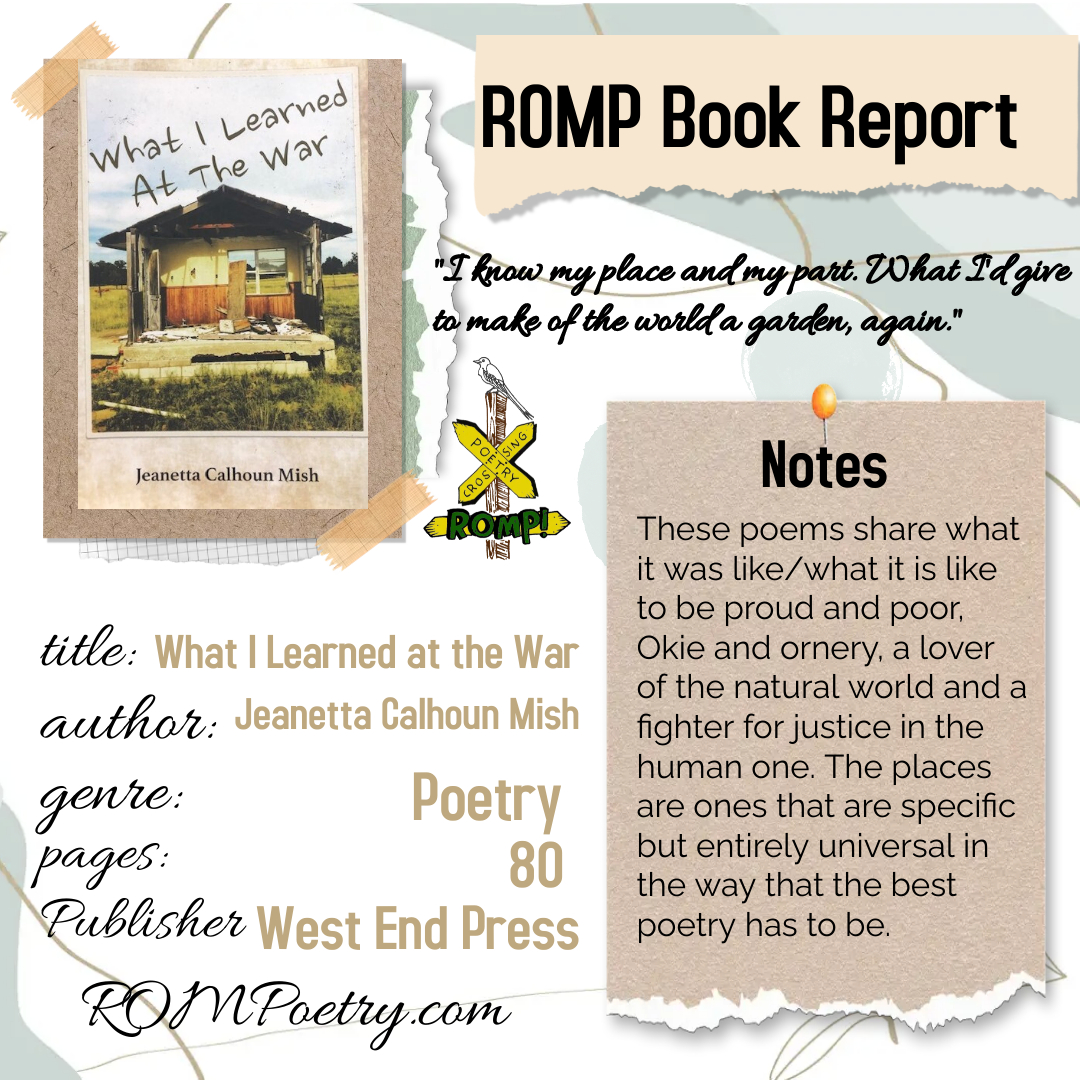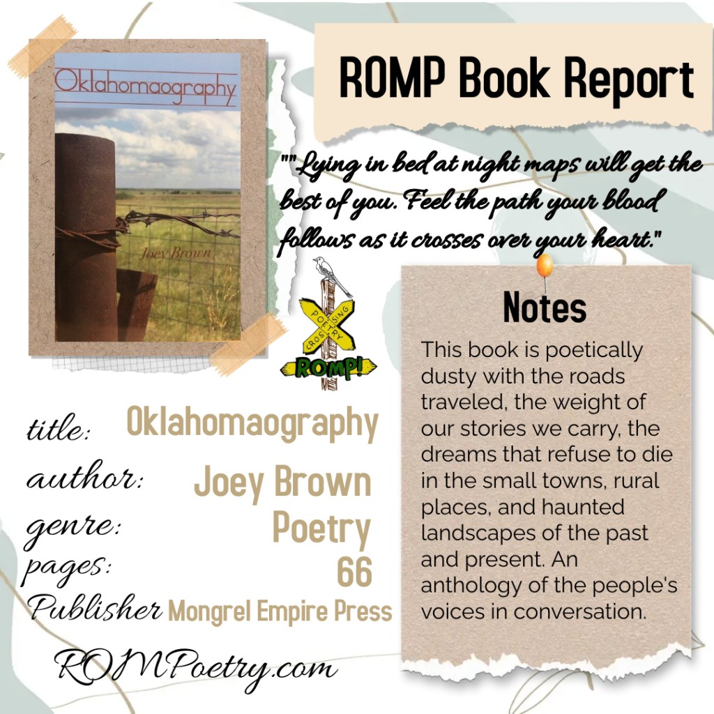 Oklahoma Poet Book Reports Send your Oklahoma author poetry book to ROMP, and we will read it and put a book report here. THANKS! ROMP, PO Box 1243, Locust Grove OK 74352 Share this: Click to share on X (Opens in new window) X Click to share on Facebook (Opens in new window) Facebook Like Loading...