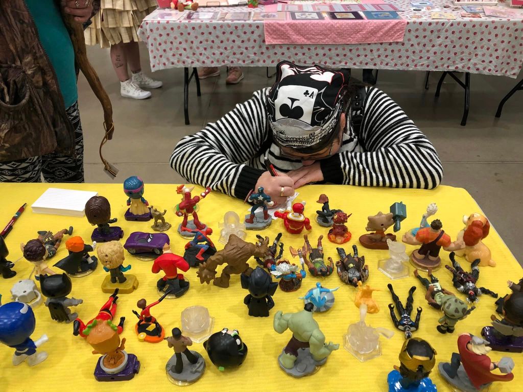 Each year since the Pryor Creek Comic Con has been in business, ROMP has had a table with action figures and the challenge to write a poem about the figure to take it home free. The poems and participation have been amazing.