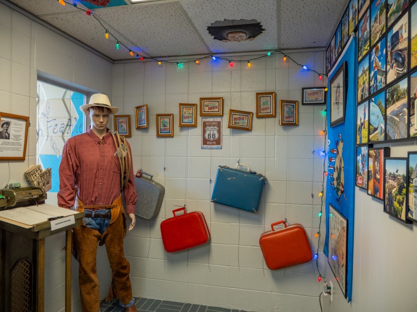 The small exhibit features poetry from a contest run for this special occasion. It also includes artwork from local artists, historical information, and interactive elements. You will find some unique information about Route 66 in this exhibit, along with artistic interpretations in poetry and art of the Mother Road.