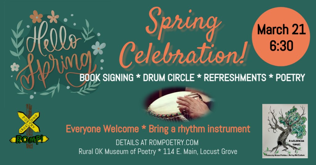 Join us for a Spring Celebration of all things seasonal, including a book signing of “A Wildness Tonic,” which was written for ROMP’s Wildness Tonic Book Club, a drum circle, refreshments, museum tours, and poetry.