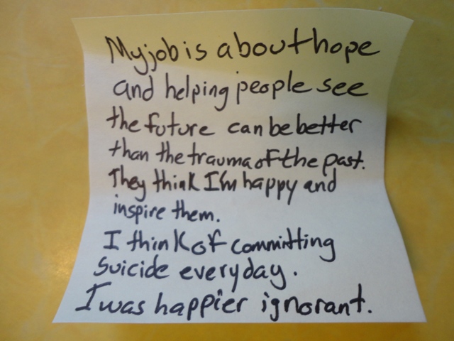 This wooden box is in the Secret Corner of the museum. A very comfortable chair sits in the corner. It is surrounded by poetry and secrets that people have made un-secrets. Continue reading “Happier Ignorant”